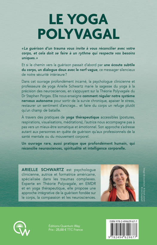 Et si le chemin vers la guérison passait d’abord par une écoute subtile du corps, un dialogue doux avec le nerf vague, ce messager silencieux de notre sécurité intérieure ? Dans cet ouvrage profondément incarné, la psychologue clinicienne et professeure de yoga Arielle Schwartz marie la sagesse du yoga à la précision des neurosciences, en s’appuyant sur la Théorie Polyvagale du docteur Stephen Porges. Elle nous enseigne comment réguler notre système nerveux autonome pour sortir de la survie chronique, apaiser le stress, restaurer un sentiment d’ancrage... et faire du corps un refuge plutôt qu’un champ de bataille. À travers des pratiques de yoga thérapeutique accessibles (postures, respirations, visualisations, méditations), l’autrice nous accompagne pas à pas vers un mieux-être somatique et émotionnel. Son approche s’adresse autant aux personnes en quête de guérison qu’aux professionnels de la santé mentale ou du mouvement corporel. Un ouvrage rare, aussi pratique que profondément humain, qui réconcilie neurosciences, spiritualité et intelligence corporelle. Titre original : Applied Polyvagal Theory in Yoga.