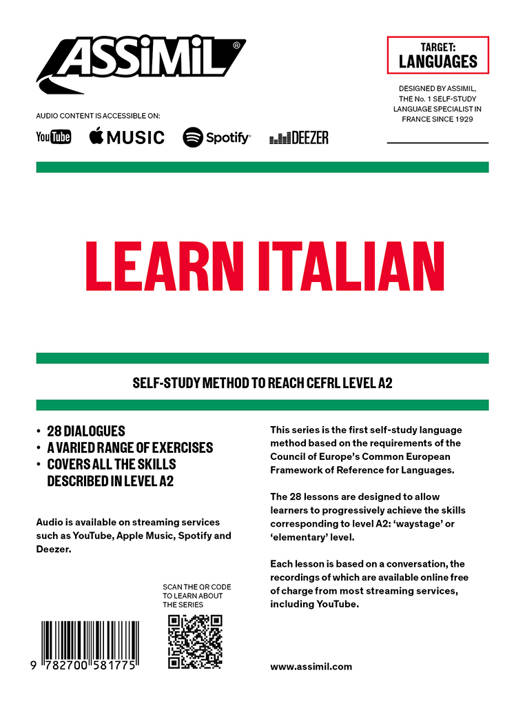 Catering to real beginners in Italian who enjoy being on the move, it features some 28 very progressive lessons in the form of dialogues, teaching the necessary skills to reach level A2, also known as "survival level".