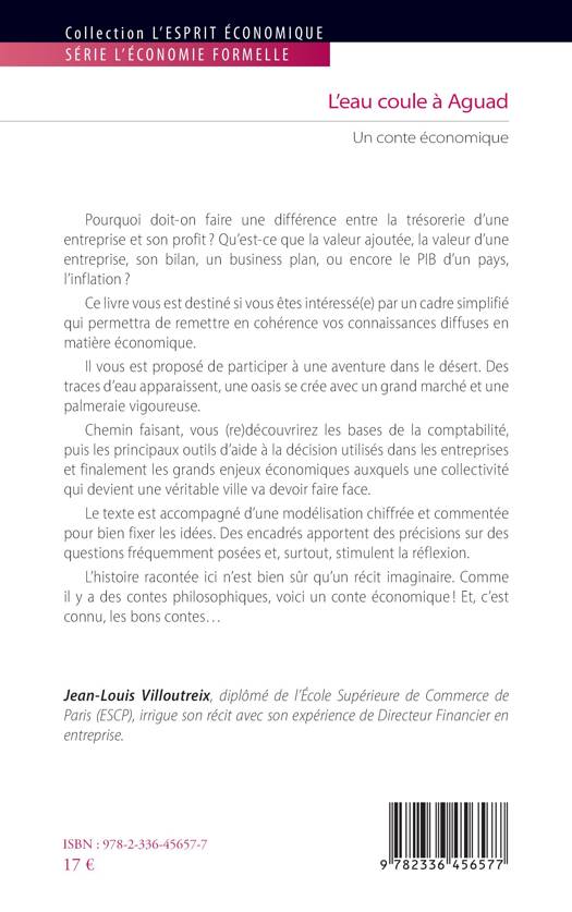 Pourquoi doit-on faire une différence entre la trésorerie d'une entreprise et son profit ? Qu'est-ce que la valeur ajoutée, la valeur d'une entreprise, son bilan, un business plan, ou encore le PIB d'un pays, l'inflation ? Ce livre vous est destiné si vous êtes intéressé(e) par un cadre simplifié qui permettra de remettre en cohérence vos connaissances diffuses en matière économique. Sous forme de conte, il vous est proposé de participer à une aventure dans le désert. Des traces d'eau apparaissent, une oasis se crée avec un grand marché et une palmeraie vigoureuse. Chemin faisant, vous (re)découvrirez les bases de la comptabilité, puis les principaux outils d'aide à la décision utilisés dans les entreprises et finalement les grands enjeux économiques auxquels une collectivité qui devient une véritable ville va devoir faire face.