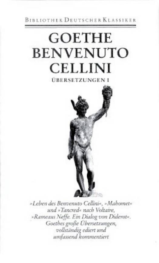 Übersetzungen spielen in Goethes literarischem Schaffen eine wesentliche Rolle. Die Kenntnis der Weltliteratur war ihm maßgeblich auch für die Ausbildung der eigenen ästhetischen Positionen. Goethes Übersetzungen aus fremden Sprachen und ebenso seine Bearbeitungen deutschsprachiger Bühnentexte sind eigenständige literarische Gattungen. Band 11 versammelt all diejenigen Texte, in denen die Übersetzung so bedeutsam ist, daß sie den eigenen poetischen Texten Goethes an Gewicht gleichkommt. Die berühmte Autobiographie des italienischen Renaissancebildhauers und Goldschmieds Benvenuto Cellini ist mehrfach übersetzt worden. Seine bewegte Lebensgeschichte blieb über die Jahrhunderte faszinierend. Cellinis Lebensbericht und die Arbeit an der Übertragung waren für Goethe ein entscheidender Schritt auf seinem Weg zur eigenen Autobiographie. Auch Voltaire und seine großen Zeitgenossen haben Goethe nachhaltig beeinflußt. In Diderots Dialogroman Le Neveu de Rameau zeigte sich für Goethe exemplarisch die Fähigkeit eines Autors, durch Kreativität eine Lebenskrise zu bewältigen.