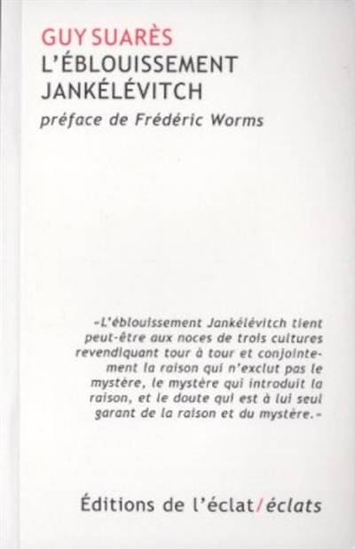 La vie, la voix, la pensée, le combat de Vladimir Jankélévitch (1903-1985) qui marquèrent le siècle, en philosophie, en musique, en politique, ne pouvaient pas mieux ressortir que dans un « éblouissement ». Ce fut celui de Guy Suarès (1932-1996), homme de théâtre, de radio et de télévision, qui s'est particulièrement attaché, par ses traductions et ses mises en scène, à mieux faire connaître la culture hispanique (Lorca, Neruda, Bergamin...) et a dirigé la Comédie de la Loire à Tours à l'invitation d'André Malraux, à qui il a consacré deux ouvrages. Une relation, lumineuse, face aux mystères de la vie et de la mort ; et dont les voix portent encore.