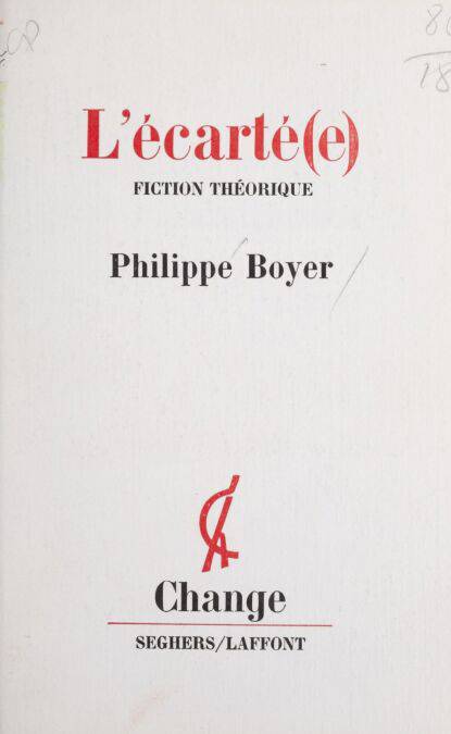 "Désir, écriture - là est la question de ce livre : comment vient s’écrire la marque du désir inconscient ? Or, là où le désir est en jeu, la "théorie" ne peut éluder l’effet de fiction qui la creuse. À moins d’en rester à sa fonction de parure, cachant ce qu’elle montre : le corps ardent de l’écriture. Côté écriture : jeu du désir et de la lettre, par une série d’écarts : entre la théorie et la fiction, l’écrit et le récit, la lettre et le mot, le texte perdu et le texte échu. Côté lecture : Michaux, Butor, Jabès, Jean Paris, Pinget, Härtling, Duras, Derrida, Paye : autant de textes que rien ne relie, sinon cette matière à relire. L’écartée - peut-être cette "mère profanée" où se marque un grand écart, au même point de son corps, lieu de la naissance et lieu de la jouissance : Non lieu barré des Mots d’ordre qui en interdisent l’accès. Entre ces deux indices - qui sont aussi les titres de précédents "romans" - un troisième livre vient donc en inscrire l’écart : simple "essai", pour que ça puisse s’écrire - essai qui est la première tentative conséquente et libre pour constituer, sur le terrain de l’écriture contemporaine, une théorie de la littérature."