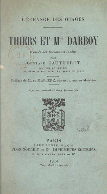 L’un des actes les plus odieux de la Commune de Paris, est sans conteste l’assassinat des otages : Mgr Darboy, archevêque de Paris, le président Bonjean, le père Ducoudray, supérieur de la maison des Jésuites de la rue des Postes. Gustave Gautherot reconstitue ici le milieu moral dans lequel se produisit cet événement tragique.