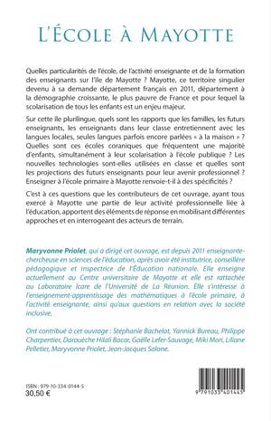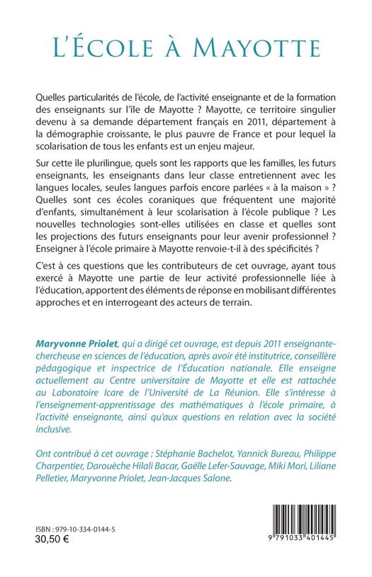 Quelles particularités de l’école, de l’activité enseignante et de la formation des enseignants sur l’île de Mayotte ? Mayotte, ce territoire singulier devenu à sa demande département français en 2011, département à la démographie croissante, le plus pauvre de France et pour lequel la scolarisation de tous les enfants est un enjeu majeur. Sur cette île plurilingue, quels sont les rapports que les familles, les futurs enseignants, les enseignants dans leur classe entretiennent avec les langues locales, seules langues parfois encore parlées « à la maison » ? Quelles sont ces écoles coraniques que fréquentent une majorité d’enfants, simultanément à leur scolarisation à l’école publique ? Les nouvelles technologies sont-elles utilisées en classe et quelles sont les projections des futurs enseignants pour leur avenir professionnel ? Enseigner à l’école primaire à Mayotte renvoie-t-il à des spécificités ?