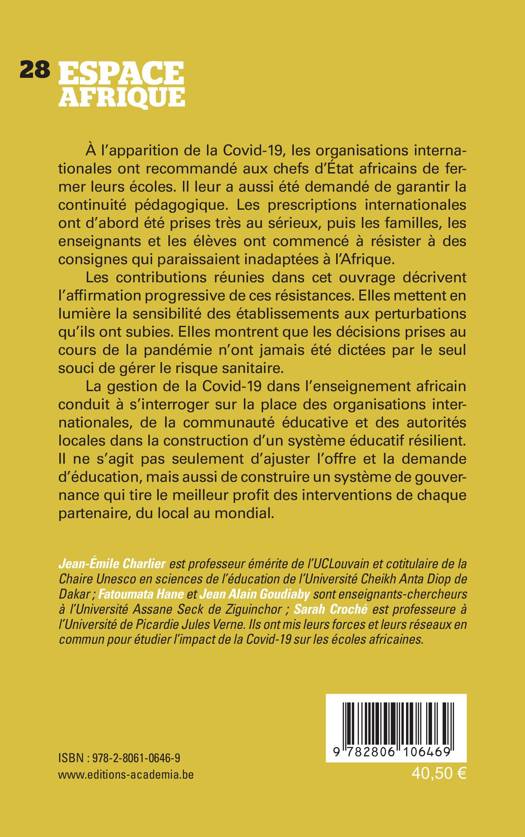 La gestion de la Covid-19 dans l'enseignement africain conduit à s'interroger sur la place des organisations internationales, de la communauté éducative et des autorités locales dans la construction d'un système éducatif résilient. Il ne s'agit pas seulement d'ajuster l'offre et la demande d'éducation, mais aussi de construire un système de gouvernance qui tire le meilleur profit des interventions de chaque partenaire, du local au mondial.