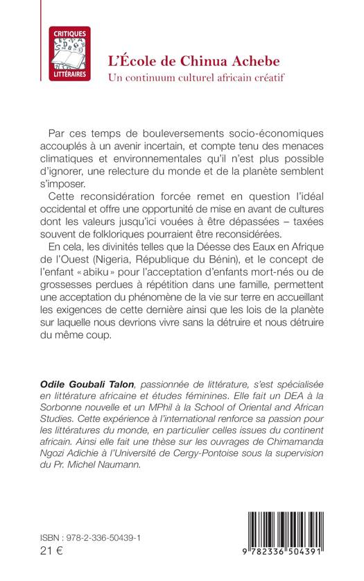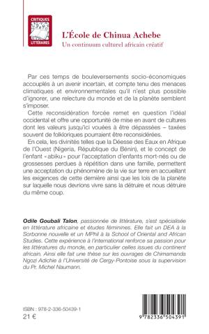 En cela, les divinités telles que la Déesse des Eaux en Afrique de l’Ouest (Nigeria, République du Bénin), et le concept de l’enfant « abiku » pour l’acceptation d’enfants mort-nés ou de grossesses perdues à répétition dans une famille, permettent une acceptation du phénomène de la vie sur terre en accueillant les exigences de cette dernière ainsi que les lois de la planète sur laquelle nous devrions vivre sans la détruire et nous détruire du même coup.