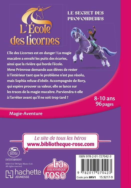 L’île des Licornes est en danger ! La magie macabre a envahi les puits des écuries, ainsi que la rivière qui borde l’école. Mme Primrose demande aux élèves de rester à l’intérieur tant que le problème n’est pas résolu, mais Sophia refuse d’obéir. Accompagnée de Rory, qui espère prouver sa valeur, elle se lance sur les traces de la magie macabre. Parviendra-t-elle à l’arrêter avant qu’il ne soit trop tard ?