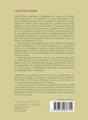 Isabelle Peloux développe une pédagogie qui repose sur la coopération plutôt que sur la compétition et vise à apprendre aux enfants à travailler autrement tout en respectant le programme scolaire habituel. À cette fin, elle s'inspire de trois grands courants pédagogiques : le mouvement Freinet fondé sur l'expression libre des enfants et le tâtonnement expérimental, la gestion mentale d'Antoine de La Garanderie qui explore, décrit et étudie les gestes mentaux de la connaissance, ainsi que le conflit sociocognitif qui permet à l'enfant de prendre conscience du point de vue d'autrui et de reformuler le sien. Elle l'enrichit de dispositifs facilitant une découverte de la relation et une éducation à la paix. Cette approche pédagogique donne des résultats extrêmement positifs. Naturellement, l'enfant aime apprendre s'il en comprend le sens et si la pédagogie proposée lui permet d'être actif dans ses apprentissages. Arrivés au collège, les élèves de l'école du Colibri gardent intacte leur soif de connaissance et manifestent du respect envers les autres. Cette expérience de terrain n'est pas une méthode mais plutôt le résultat de trente ans de recherche, que chaque lecteur s'appropriera comme il le souhaite et que chaque enseignant enrichira de sa personnalité. Cet ouvrage est émaillé d'exemples concrets, pris sur le vif en classe, et d'éléments plus théoriques sur lesquels repose la pédagogie de la coopération.