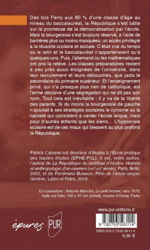 Des lois Ferry aux 80 % d’une classe d’âge au niveau du baccalauréat, la République s’est bâtie sur la promesse de la démocratisation par l’école. Mais la bourgeoisie s’est toujours réservé, à l’aide de barrières plus ou moins masquées, un accès privilégié à la réussite scolaire et sociale. C’était vrai du temps où le latin et le baccalauréat n’appartenaient qu’à quelques-uns. Puis, l’allemand ou les mathématiques ont pris la relève. Les classes préparatoires restent à peu près aussi éloignées de l’université, dans leur recrutement et leurs débouchés, que jadis le secondaire du primaire supérieur. Et l’enseignement privé, qui n’a presque plus rien de catholique, est l’arme décisive d’une ségrégation qui ne dit pas son nom. Tout cela est inévitable : il y va de la liberté des parents. Si du moins la bourgeoisie de gauche n’ajoutait à ses stratégies scolaires le cynisme ou la naïveté qui consistent à vanter l’école laïque, mais pour d’autres enfants que les siens… L’hypocrisie scolaire est de ces maux qui blessent au plus profond la République.