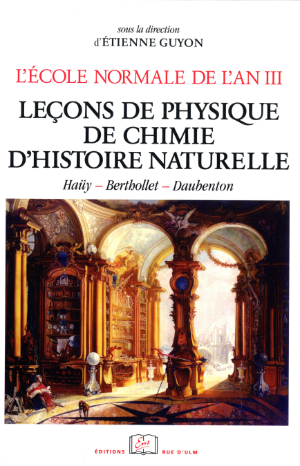 Une École révolutionnaire à Paris sous la Révolution. Il survient parfois un moment de l’histoire où les scientifiques, tous domaines confondus, s’imposent dans un même mouvement de faire le point des connaissances acquises et de tracer les routes à suivre. C’est à un tel moment que nous convient les leçons de l’an III, professées au premier semestre de 1795, retranscrites par le soin de sténographes et aussitôt publiées. Dernière tentative désespérée - d’offrir à un seul cerveau une connaissance encyclopédique ordonnancée par la raison analytique, ces leçons s’interrompront lors des journées de Prairial qui mettront un point (provisoirement) final à l’expérience si riche de l’École normale. Leçons de physique, de chimie, d’histoire naturelle. Pour les cours de sciences expérimentales, on fit appel aux plus grands : Haüy le physicien cristallographe, Berthollet le médecin chimiste, Daubenton le naturaliste anatomiste. En voici enfin la riche édition critique, qui apporte un éclairage original sur ces sciences dans une période charnière et décisive. Faisant suite à la publication des leçons de mathématiques et de sciences humaines, ce troisième volume sera suivi par celui des cours de littérature et par un volume d’introduction historique générale sur l’institution de l’École normale de l’an III - l’ensemble constituant, à l’instar de l’Encyclopédie mais dans un esprit différent, un témoignage unique sur l’état du savoir à la fin du siècle des Lumières.