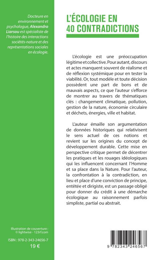 L’écologie est une préoccupation légitime et collective. Pour autant, discours et actes manquent souvent de réalisme et de réflexion systémique pour en tester la viabilité. Or, tout modèle et toute décision possèdent une part de bons et de mauvais aspects, ce que l’auteur s’efforce de montrer au travers de thématiques clés : changement climatique, pollution, gestion de la nature, économie circulaire et déchets, énergies, ville et habitat. L’auteur émaille son argumentation de données historiques qui relativisent le sens actuel de ces notions et revient sur les origines du concept de développement durable. Cette mise en perspective critique permet de décentrer les pratiques et les rouages idéologiques qui les influencent concernant l’Homme et sa place dans la Nature. La confrontation à la contradiction, en lieu et place d’une conviction de principe, entêtée et dirigiste, est un passage obligé pour donner du crédit à une démarche écologique au raisonnement parfois simpliste, partial ou abstrait.