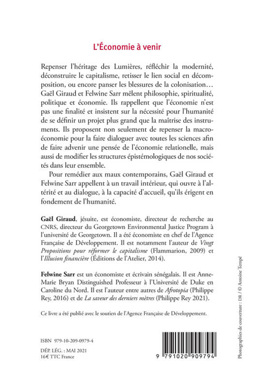 Dans un dialogue approfondi, Gaël Giraud et Felwine Sarr réfléchissent la modernité, repensent l'héritage des Lumières, déconstruisent le capitalisme, imaginent des gouvernements qui prendraient leurs distances par rapport au réductionnisme capitaliste... Mêlant philosophie, spiritualité, politique et économie, cet échange fluide rappelle que l'économie n'est pas une finalité et insiste sur la nécessité pour l'humanité de se définir un projet plus grand que la maîtrise des instruments.