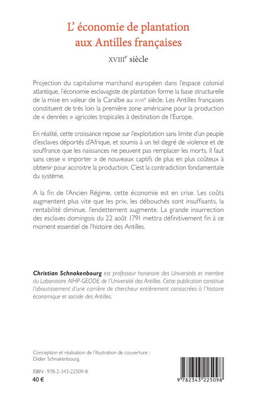 Projection du capitalisme marchand européen dans l’espace colonial atlantique, l’économie esclavagiste de plantation forme la base structurelle de la mise en valeur de la Caraïbe au XVIIIe siècle. Les Antilles françaises constituent de très loin la première zone américaine pour la production de « denrées » agricoles tropicales à destination de l’Europe. En réalité, cette croissance repose sur l’exploitation sans limite d’un peuple d’esclaves déportés d’Afrique, et soumis à un tel degré de violence et de souffrance que les naissances ne peuvent pas remplacer les morts. Il faut sans cesse « importer » de nouveaux captifs de plus en plus coûteux à obtenir pour accroitre la production. C’est la contradiction fondamentale du système. A la fin de l’Ancien Régime, cette économie est en crise. Les coûts augmentent plus vite que les prix, les débouchés sont insuffisants, la rentabilité diminue, l’endettement augmente. La grande insurrection des esclaves domingois du 22 août 1791 mettra définitivement fin à ce moment essentiel de l’histoire des Antilles.