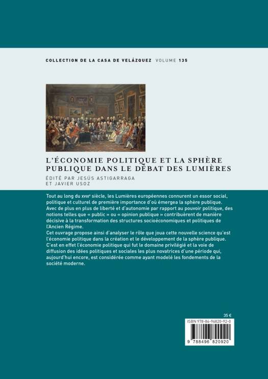 Tout au long du XVIIIe siècle, les Lumières européennes connurent un essor social, politique et culturel de première importance d'où émergea la sphère publique. Avec de plus en plus de liberté et d'autonomie par rapport au pouvoir politique, des notions telles que « public » ou « opinion publique » contribuèrent de manière décisive à la transformation des structures socioéconomiques et politiques de l'Ancien Régime. Cet ouvrage propose ainsi d'analyser le rôle que joua cette nouvelle science qu'est l'économie politique dans la création et le développement de la sphère publique. C'est en effet l'économie politique qui fut le domaine privilégié et la voie de diffusion des idées politiques et sociales les plus novatrices d'une période qui, aujourd'hui encore, est considérée comme ayant modelé les fondements de la société moderne.