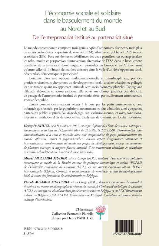 Cet ouvrage analyse les rôles, les modes et perspectives d'intervention alternatives de l'Économie Sociale et Solidaire (ESS) dans le basculement planétaire de la civilisation économique, en particulier en Europe et en Afrique. Il s'inscrit de manière affirmée dans la visée d'un développement local, décentralisé, démocratique et participatif. Conduite dans une optique multidimensionnelle et transdisciplinaire, l'analyse décapite les préjugés les plus tenaces aux apports et limites de cette socio-économie plurielle.