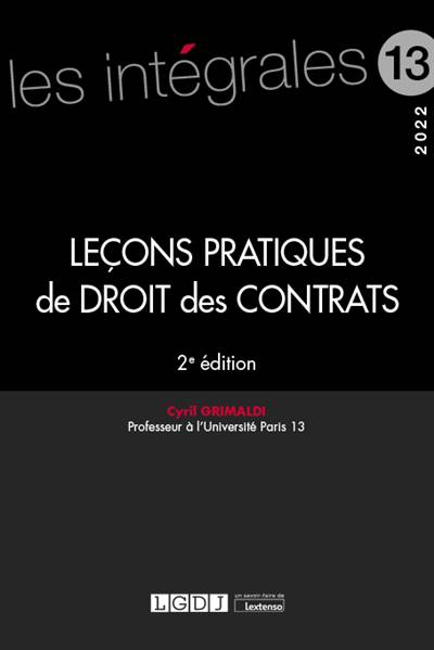 Depuis 2016, le Code civil contient un droit des contrats plus clair et plus précis, même si certaines de ses règles sont critiquables. Dès lors, le rôle de la doctrine n'est-il pas appelé à évoluer ? C'est le parti pris par ces Leçons pratiques, qui se veulent résolument positivistes : outre qu'elles entendent naturellement rendre compte du sens et de la portée des dispositions nouvelles, elles visent à en mesurer l'impact réel eu égard aux règles du droit spécial et aux aménagements conventionnels permis.