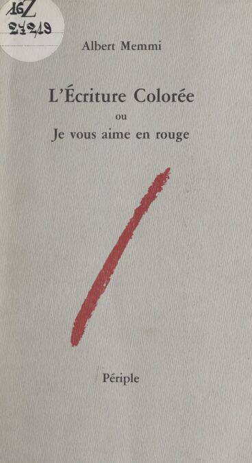 Dans le roman d’Albert Memmi "Le scorpion", le héros principal — également écrivain — se pose un difficile problème technique : comment suggérer au lecteur les différents niveaux de la vérité, de l’imaginaire au constat, en passant par l’émotion amoureuse ou poétique. Pour aider son héros, l’auteur élabore un véritable système d’écritures colorées, où la passion serait en rouge, la vérité en gris, l’analogie en jaune, et la fantaisie en bleu... Voici l’essai rédigé à cette occasion. On y verra que par delà un procédé littéraire, insolite et passionnant, Albert Memmi aboutit à une classification des langages et à une éthique de l’écrit.