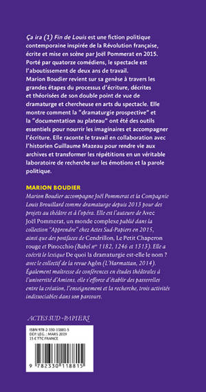 Marion Boudier revient sur sa genèse à travers les grandes étapes du processus d'écriture, décrites et théorisées de son double point de vue de dramaturge et chercheuse en Arts du spectacle. Elle montre comment la "dramaturgie prospective" et la "documentation au plateau" ont été des outils essentiels pour nourrir les imaginaires et accompagner l'écriture. Elle raconte le travail en collaboration avec l'historien Guillaume Mazeau pour rendre vie aux archives et transformer les répétitions en un véritable laboratoire de recherche sur les émotions et la parole politique.