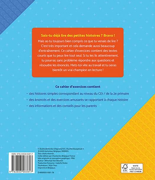 Ce cahier d'exercices contient des histoires courtes et amusantes que votre enfant prendra plaisir à lire tout seul. Grâce aux questions qui suivent chaque histoire, il pourra aussi tester s'il a compris ce qu'il venait de lire. Il fera ainsi très vite des progrès en lecture et en compréhension de textes ! * Avec des infos et des conseils pour les parents * Niveau CE1/2e primaire