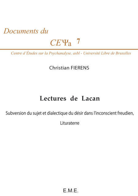 Il faut prendre le désir à la lettre (Lacan, La direction de la cure, p. 620) / Le désir : Subversion du sujet / La lettre : Lituraterre / Le présent volume est la réimpression de la transcription de deux cours déjà publiés dans les cahiers du Cepsy.