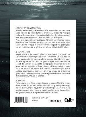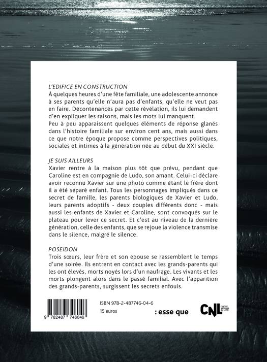 L’EDIFICE EN CONSTRUCTION À quelques heures d’une fête familiale, une adolescente annonce à ses parents qu’elle n’aura pas d’enfants, qu’elle ne veut pas en faire. Décontenancés par cette révélation, ils lui demandent d’en expliquer les raisons, mais les mots lui manquent. Peu à peu apparaissent quelques éléments de réponse glanés dans l’histoire familiale sur environ cent ans, mais aussi dans ce que notre époque propose comme perspectives politiques, sociales et intimes à la génération née au début du XXI siècle.