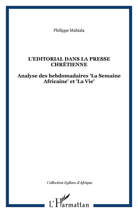 La pratique éditoriale est-elle vécue de la même manière d'un journal à l'autre ? Qu'est-ce qui devrait caractériser un hebdomadaire chrétien ? Traiter de tout : la culture, l'économie, l'éducation, la politique, le sport, en y discernant les "signes des temps" ? Faire connaître la position officielle de l'Eglise ? Ou aider les chrétiens à avoir des éléments de réflexion, à agir devant les problèmes de société ? Cette réflexion est faite à partir de La Semaine Africaine du Congo-Brazzaville et La Vie en France.