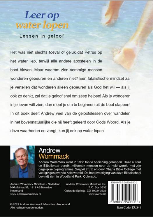 In dit boek deelt Andrew veel van de geloofslessen over wandelen in het bovennatuurlijke die hij heeft geleerd door Gods Woord. Als je deze waarheden ontvangt, kun jij ook op water lopen.