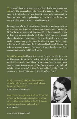 Dezső Kosztolányi (1885-1936) is een van de grootste schrijvers van de Hongaarse literatuur. In 1926 verwierf hij internationale roem met ÉDES ANNA, dat in 2004 bij Van Gennep verscheen als ANNA. Naast ANNA en LEEUWERIK verschenen bij Van Gennep tevens van zijn hand DE BEKENTENISSEN VAN KORNÉL ESTI (2006), NERO, DE BLOEDIGE DICHTER (2010), DE AVONTUREN VAN KORNÉL ESTI (2011) en DE GOUDEN VLIEGER (2013).