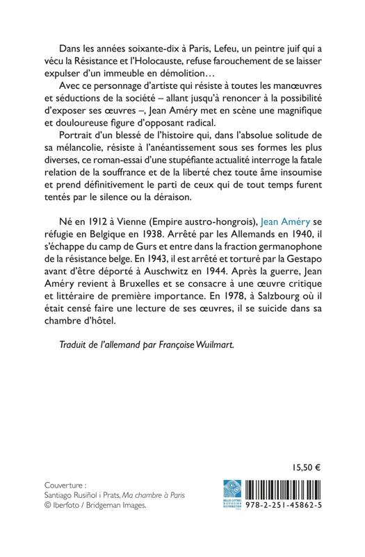 Avec ce personnage d’artiste qui résiste à toutes les manoeuvres et séductions de la société – allant jusqu’à renoncer à la possibilité d’exposer ses oeuvres –, Jean Améry met en scène une magnifique et douloureuse figure d’opposant radical.