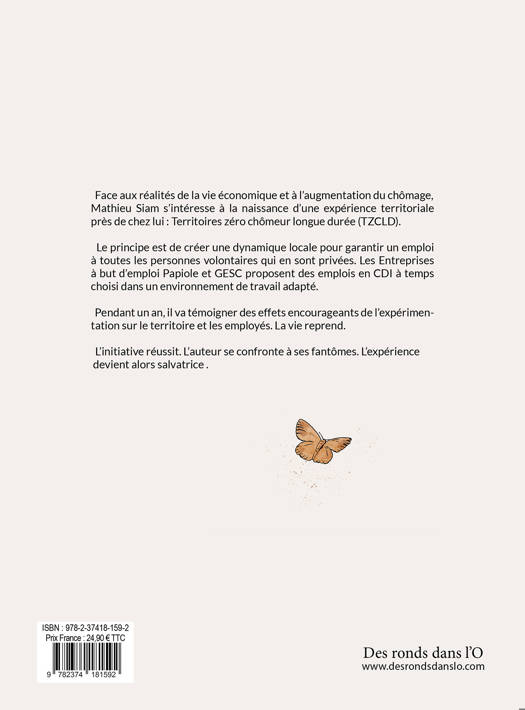 Face aux réalités de la vie économique et à l'augmentation du chômage, Mathieu Siam s'intéresse à la naissance d'une expérience territoriale près de chez lui : Territoires zéro chômeur longue durée (TZCLD). Le principe est de créer une dynamique locale pour garantir un emploi à toutes les personnes volontaires qui en sont privées. Les entreprises à but d'emploi Papiole et GESC proposent des emplois en CDI à temps choisi dans un environnement de travail adapté. Pendant un an, il va témoigner des effets encourageants de l'expérimentation sur le territoire et les employés. La vie reprend. L'initiative réussit. L'auteur se confronte à ses fantômes. L'expérience devient alors salvatrice.