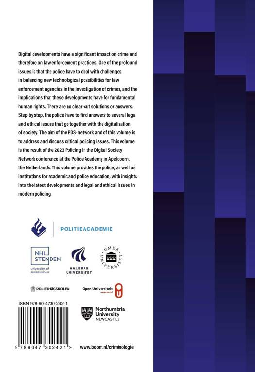 Digital developments have a significant impact on crime and therefore on law enforcement practices. One of the profound issues is that the police have to deal with challenges in balancing new technological possibilities for law enforcement agencies in the investigation of crimes, and the implications that these developments have for fundamental human rights. There are no clear cut solutions or answers. Step by step the police have to find answers to several legal and ethical issues that go together with the digitalization of society. The aim of the PDS-network and of this volume is to address and discuss critical policing issues. This volume is the result of the 2023 Policing in the Digital Society network conference at the Police Academy in Apeldoorn, the Netherlands. This volume provides the police as well as institutions for academic and police education with insights into actual developments and legal and ethical issues in modern policing.