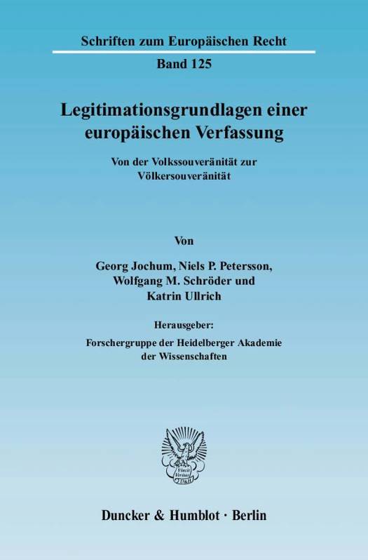 Die Europäische Union muss ihre Entscheidungsprozesse neu gestalten. Damit stellt sich die Frage nach der Legitimation der Europäischen Union und ihrer Institutionen. Der vorliegende Band fasst die Ergebnisse eines im Rahmen des WIN-Kollegs der Heidelberger Akademie der Wissenschaft geförderten Forschungsprojekts zu den Legitimationsgrundlagen einer Europäischen Verfassung zusammen, die auf einer Tagung in Heidelberg diskutiert wurden. Thematisch werden zunächst in zwei Beiträgen Grundlagen legitimer suprastaatlicher Herrschaftsausübung und die Funktion und Ausgestaltung staatlicher Souveränität diskutiert. Es folgt eine Analyse des Zustandekommens der Institutionenordnung der EU und ein Vorschlag für ein nach dem Prinzip der "Völkersouveränität" verfasstes geeintes Europa, das einerseits den Mitgliedstaaten die Übertragungs- und Kontrollfunktion belässt, andererseits die demokratische Herrschaftsausübung in der Gemeinschaft stärkt. Schließlich wird in einer Fallstudie die unabhängige Stellung der EZB analysiert.