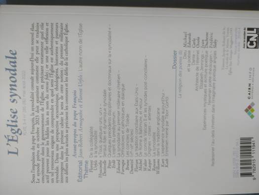 La synodalité, dimension constitutive de l'Église en son apostolicité, connaît aujourd'hui un nouvel élan sous l'impulsion du Pape François. Le synode prévu en octobre 2023 devra examiner quelle autonomie missionnaire convient aux conférences épiscopale, mais aussi le rôle actif des fidèles laïcs dans les missions de gouvernement, au nom du sensus fidei. Le présent Cahier fait l'historique de la question dans une perspective Åcuménique et examine les fondements doctrinaux de la synodalité du point de vue catholique