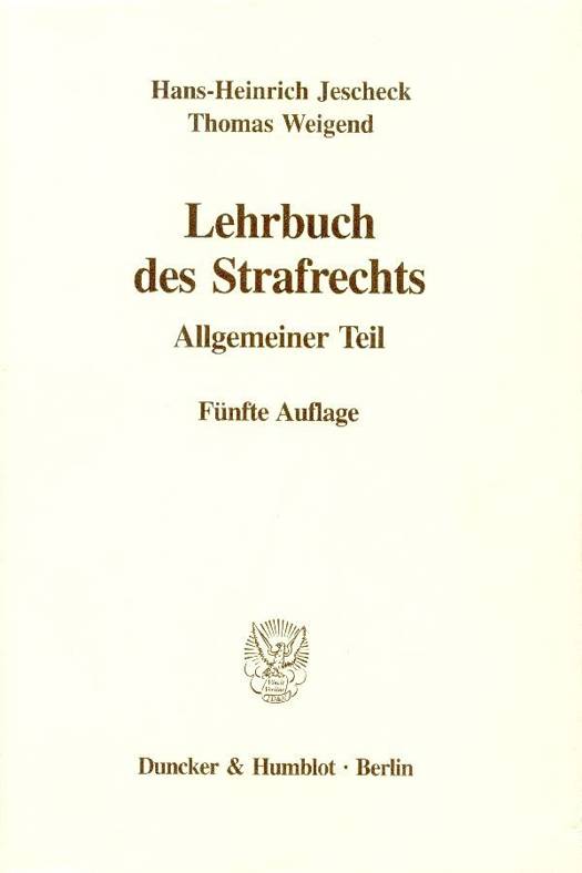 Der "Jescheck" hat seit seinem ersten Erscheinen im Jahre 1969 eine führende Position in der deutschen, aber auch in der ausländischen Strafrechtswissenschaft erlangt. Mit der von der Fachwelt mit Spannung erwarteten völlig neu bearbeiteten und erweiterten 5. Auflage ist Thomas Weigend, Professor an der Universität zu Köln, als Mitautor in das Lehrbuch eingetreten. Der "Jescheck/Weigend" ist das gemeinsame Werk beider Autoren.