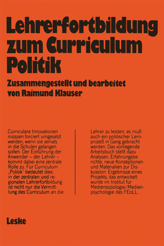 Die seinerzeit heftig geführte Diskussion über Curriculum "Politik" scheint ihre Schärfe verloren zu haben, seitdem die "Richtlinien für den Politik-Unterricht NW" mit mehr oder weniger großem Erfolg den Zugang zur Praxis, d. h. in die Schule gefunden haben. Im alltäglichen Unterricht ist vieles von dem hinweggeglättet worden, was bei der Einfüh- rung von Curriculum "Politik" noch als politischer Spreng- stoff von Theoretikern und Praktikern vehement umstritten wurde. Dies bedeutet aber keinesfalls, daß damit die Pro- bleme gelöst wurden, die bisher bei der Vermittlung des Curriculum in die Praxis auftraten und immer wieder dann aktuell werden, wenn Lehrerfortbildung ihre wichtige Vermittlungsfunktion bei der Umsetzung curricularer Innova- tionen wahrnehmen will, oder gar den notwendigen Bezug zwischen curricularer Entwicklungsarbeit und Unterrichts- praxis sowie den Ausbildungsvoraussetzungen der Lehrer her- zustellen versucht. Innovationen - zumal solche mit unmit- telbar politischem Bezug - bedürfen einer forcierten Um- setzung, wenn sie überhaupt jemals in die Praxis gelangen sollen, und der Einführung der Anwender der Innovation ist dabei eine zentrale Rolle zuzuweisen. Die Installation ei- ner curricularen Innovation "per Erlaß" reicht noch lange nicht hin, die Unterrichtspraxis tatsächlich im Sinne der vorgenommenen Ziele wirksam zu beeinflussen. Jede Art von Bildungsreform steht und fällt damit, inwieweit die Reform- ziele und -inhalte von den von ihnen Betroffenen akzeptiert werden. Eine geeignete Innovationsstrategie muß daher so an- gelegt (und auch konsequent durchgehalten) werden, daß Re- formziele und -inhalte mit den Handlungsbedingungen "vor Ort" in Übereinstimmung gebracht werden können.
