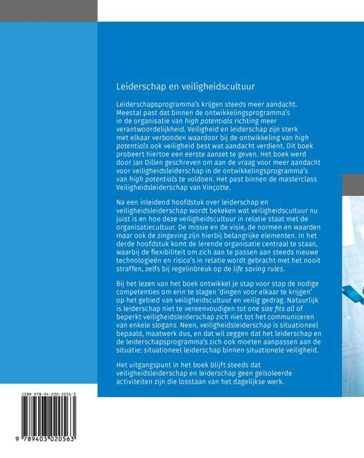 Na een inleidend hoofdstuk over leiderschap en veiligheidsleiderschap wordt bekeken wat veiligheidscultuur nu juist is en hoe deze veiligheidscultuur in relatie staat met de organisatiecultuur. De missie en de visie, de normen en waarden maar ook de zingeving zijn hierbij belangrijke elementen. In het derde hoofdstuk komt de lerende organisatie centraal te staan, waarbij de flexibiliteit om zich aan te passen aan steeds nieuwe technologieën en risico’s in relatie wordt gebracht met het nooit straffen, zelfs bij regelinbreuk op de life saving rules.