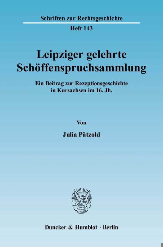 Julia Pätzold bettet die Edition in Ausführungen zur Entstehung und Entwicklung des Leipziger Schöffenstuhls sowie die hiesige Stadtgeschichte ein und erarbeitet Kurzbiographien zu den dort tätigen Schöffen. Der Rechtszustand im Kursachsen des 16. Jahrhunderts, in dem die Schöffen tätig wurden, wird erörtert. Zahlreiche Indizes runden die Arbeit ab.