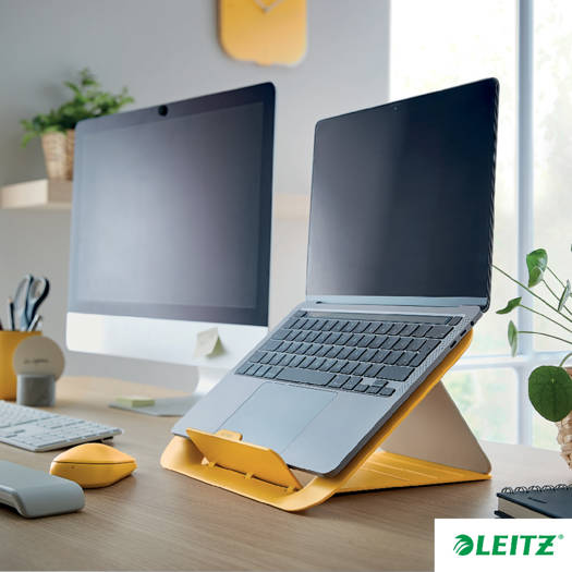 De Leitz Ergo Cosy Laptopstandaard verhoogt het scherm van jouw laptop om het kijkcomfort te vergroten en jouw houding te verbeteren. Het gebruik van een laptopverhoger bevordert ook de luchtstroom rondom je laptop, waardoor de laptopaccu en interne onderdelen minder worden belast. Met zijn minimalistische ontwerp en matte afwerkingskleuren zal deze stijlvolle laptopstandaard de gezondheid en het welzijn verbeteren door moeiteloos de perfecte actieve werkset te creëren. Combineer met andere Leitz Ergo producten voor een uitnodigende en flexibele werkruimte die je de hele dag in beweging houdt.