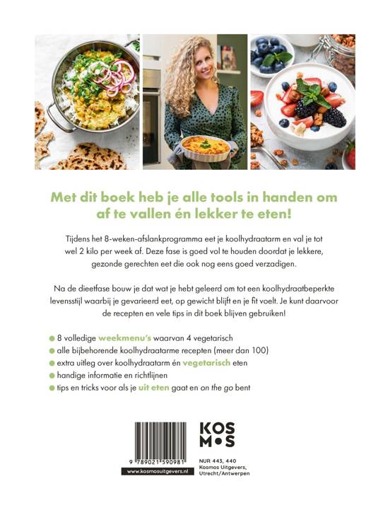 Na de dieetfase bouw je dat wat je hebt geleerd om tot een koolhydraatbeperkte levensstijl waarbij je gevarieerd eet, op gewicht blijft en je fit voelt. Je kunt daarvoor de recepten en vele tips in dit boek blijven gebruiken!