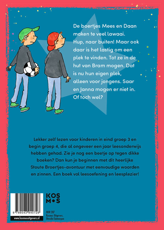 Je kent Daan en Mees misschien als de buurjongens van de Zoete Zusjes Saar en Janna. Nu kunnen ook de allerjongste lezers genieten van de avonturen van de Stoute Broertjes. Met in totaal maar liefst 144 bladzijden leesplezier zullen kinderen in groep 2 en 3 kunnen beginnen met het herkennen en lezen van de eerste letters, woordjes en zinnen. Eerst samen, en dan zelf! Natuurlijk zijn de verhalen weer opgevrolijkt met de leukste illustraties van Iris Boter.