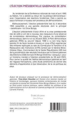 Au lendemain de la Conférence nationale de mars et avril 1990 au Gabon, l'on a assisté au retour de la pratique démocratique avec l'organisation des élections fondatrices. Cela a permis au pays d'amorcer à nouveau son processus de démocratisation. Malheureusement, l'élection présidentielle test du 5 décembre 1993 ressembla à une parodie électorale dont le principal bénéficiaire fut Omar Bongo. L'élection présidentielle d'août 2016 et la crise postélectorale née de celle-ci ont été à nouveau des marqueurs d'une absence de consolidation démocratique. Par manque de consolidation démocratique, dans la nuit du 30 août 2023, le Parti démocratique gabonais (PDG) au pouvoir depuis 1968 a vu son long règne prendre fin de façon brutale à travers un coup d'État organisé par des militaires regroupés au sein du Comité pour la Transition et la Restauration des Institutions (CTRI) conduit par le Général Brice-Clotaire Oligui, Commandant de la Garde Républicaine (GR) lors de la proclamation des résultats frauduleux par le Centre gabonais des Élections (CGE) donnant Ali Bongo Ondimba vainqueur pour un troisième mandat à l'élection présidentielle du 26 août 2023. Pour cerner la qualité de l'édifice démocratique gabonais au sein de l'espace francophone, cette étude ambitionne de donner des éléments d'appréciation à tout observateur de la vie politique du pays.