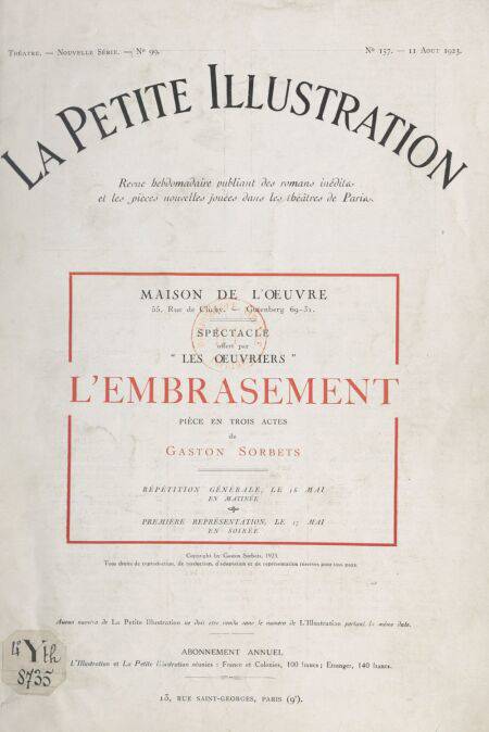 Pièce en trois actes, représentée pour la première fois le 16 mai 1923 par les Œuvriers à la Maison de l'Œuvre