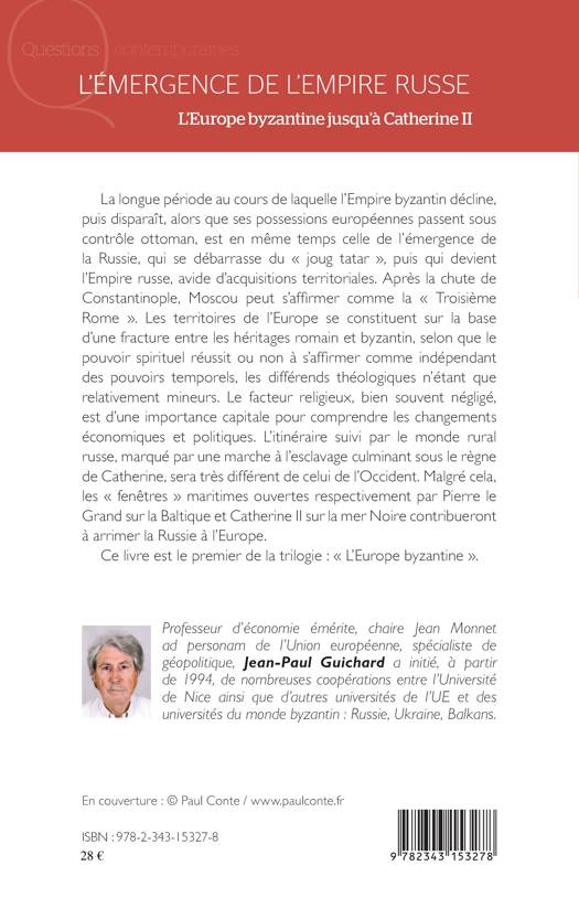 L'émergence de l'Empire russe est le premier opus d'un ensemble de trois ouvrages présentant l'histoire et la géopolitique de l'Europe byzantine du cinquième siècle à aujourd'hui. Le divorce religieux entre Rome et Constantinople est un élément essentiel de la coupure de l'Europe, entre l'Occident et l'Orient dont le substrat religieux est orthodoxe. Avec la chute de Constantinople et alors que les Balkans passent sous domination ottomane, Moscou s'affirme comme la Troisième Rome, la Russie étant la principale héritière du monde byzantin. Débarrassée de la domination turco-mongole, elle devient, au dix-huitième siècle, un empire puissant ouvert sur l'Europe et le monde.