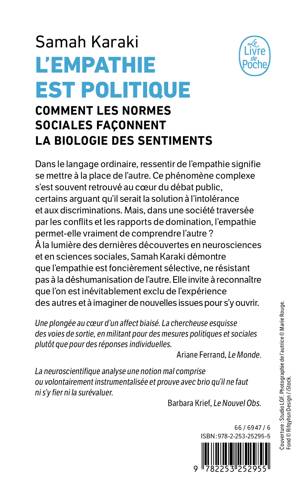 À la lumière des dernières découvertes en neurosciences et en sciences sociales, Samah Karaki démontre que l’empathie est foncièrement sélective, ne résistant pas à la déshumanisation de l’autre par les discours médiatiques ou politiques. Dans un essai stimulant et puissant, elle invite à reconnaître que l’on est inévitablement exclu de l’expérience des autres, et à imaginer de nouvelles voies pour s’y ouvrir, notamment en plaidant en faveur de mesures politiques et sociales.