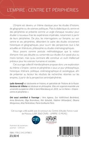 L’Empire est devenu un thème classique pour les études d’histoire, de géographie ou de sciences politiques. Mais la dialectique du centre et des périphéries se présente comme un angle d’attaque novateur pour étudier à nouveaux frais les expériences impériales. De plus, les interrogations sur l’empire débordent le cadre des études strictement historiques et géographiques, pour ouvrir des perspectives tout à fait actuelles en littérature, philosophie ou études cinématographiques. Nous posons comme postulat méthodologique que la notion d’empire n’est pas désuète, mais qu’elle constitue un outil intellectuel précieux pour les sciences humaines et sociales. Cet ouvrage collectif interdisciplinaire propose donc une exploration sous un jour philosophique, historique, littéraire, politique, cinématographique et sociologique, afin de présenter les résultats de recherches récentes sur les empires.