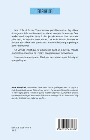 Irna, Yola et Brissa s'épanouissent paisiblement au Pays Bleu, étrange contrée entièrement azurée et coupée du monde. Seul Nadar a osé la quitter. Mais il n'est jamais revenu. Une décennie plus tard, le mystère reste entier. Les trois jeunes femmes se lancent alors dans une quête aussi rocambolesque que poétique pour le retrouver. Ce voyage initiatique se poursuivra dans un nouveau monde multicolore, inconnu, pas moins dangereux que merveilleux. Une aventure épique et féérique, aux teintes aussi héroïques que poétiques.