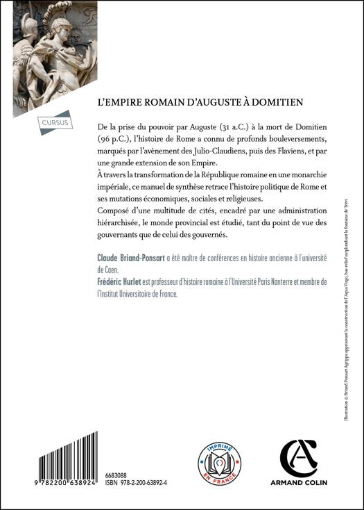 De la prise du pouvoir par Auguste (31 a.C.) à la mort de Domitien (96 p.C.), l’histoire de Rome a connu de profonds bouleversements, marqués par l’avènement des Julio-Claudiens, puis des Flaviens, et par une grande extension de son Empire. À travers la transformation de la République romaine en une monarchie impériale, ce manuel de synthèse retrace l’histoire politique de Rome et ses mutations économiques, sociales et religieuses. Composé d’une multitude de cités, encadré par une administration hiérarchisée, le monde provincial est étudié, tant du point de vue des gouvernants que de celui des gouvernés.