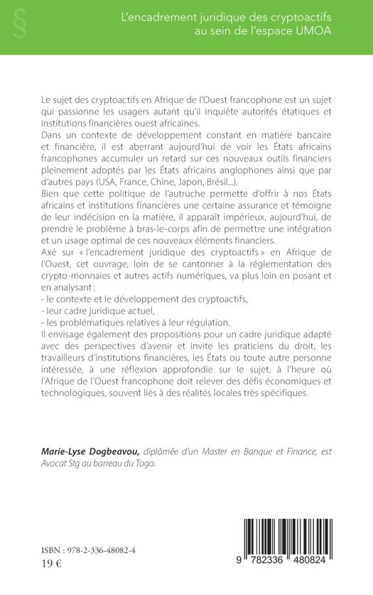 Le sujet des cryptoactifs en Afrique de l'Ouest francophone est un sujet qui passionne les usagers autant qu'il inquiète autorités étatiques et institutions financières ouest africaines. Dans un contexte de développement constant en matière bancaire et financière, il est aberrant aujourd'hui de voir les États africains francophones accumuler un retard sur ces nouveaux outils financiers pleinement adoptés par les États africains anglophones ainsi que par d'autres pays (USA, France, Chine, Japon, Brésil...). Bien que cette politique de l'autruche permette d'offrir à nos États africains et institutions financières une certaine assurance et témoigne de leur indécision en la matière, il apparaît impérieux, aujourd'hui, de prendre le problème à bras-le-corps afin de permettre une intégration et un usage optimal de ces nouveaux éléments financiers. Axé sur l'encadrement juridique des cryptoactifs en Afrique de l'Ouest, cet ouvrage, loin de se cantonner à la réglementation des crypto-monnaies et autres actifs numériques, va plus loin en posant et en analysant - le contexte et le développement des cryptoactifs, - leur cadre juridique actuel, - les problématiques relatives à leur régulation. Il envisage également des propositions pour un cadre juridique adapté avec des perspectives d'avenir et invite les praticiens du droit, les travailleurs d'institutions financières, les États ou toute autre personne intéressée, à une réflexion approfondie sur le sujet, à l'heure où l'Afrique de l'Ouest francophone doit relever des défis économiques et technologiques, souvent liés à des réalités locales très spécifiques.