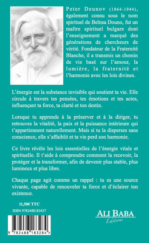 Dans l’enseignement lumineux de Peter Deunov, tout est énergie. Chaque souffle, chaque pensée, chaque geste participe à un courant universel qui relie l’homme à la nature, à ses semblables et au divin.?Ce livre explore les multiples formes de cette énergie : la lumière, le travail, la fraternité, le silence, la musique, l’amour… Autant de sources vivantes qui nourrissent l’âme et transforment l’existence.?À travers des citations et une mise en perspective claire et profonde, l’enseignement de Deunov se révèle comme une invitation à vivre consciemment, à collaborer avec les forces de la vie et à devenir un être de paix, de joie et d’amour universel.?Un guide inspirant et pratique pour tous ceux qui aspirent à éveiller en eux la puissance spirituelle et à marcher dans l’harmonie.