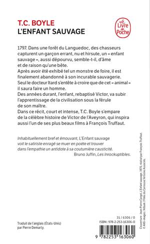 1797. Dans une forêt du Languedoc, des chasseurs capturent un garçon errant, nu et hirsute. Qui est-il, cet « enfant sauvage », aussi dépourvu, semble-t-il, d’âme et de raison qu’une bête ? Après avoir été exhibé tel un monstre de foire, il est finalement abandonné à son incurable sauvagerie. Seul le docteur Itard s'entête à croire que de cet « animal » il saura faire un homme. Des années durant, l'enfant, rebaptisé Victor, va subir l'apprentissage de la civilisation sous la férule de son maître. Dans ce récit, bref et intense, T. C. Boyle s'empare de la célèbre histoire de Victor de l'Aveyron, qui inspira aussi l'un de ses plus beaux films à François Truffaut.